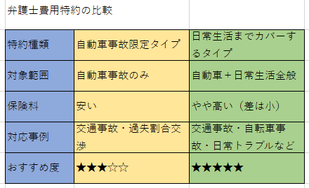2種類の弁護士特約 ― カバー範囲の違い