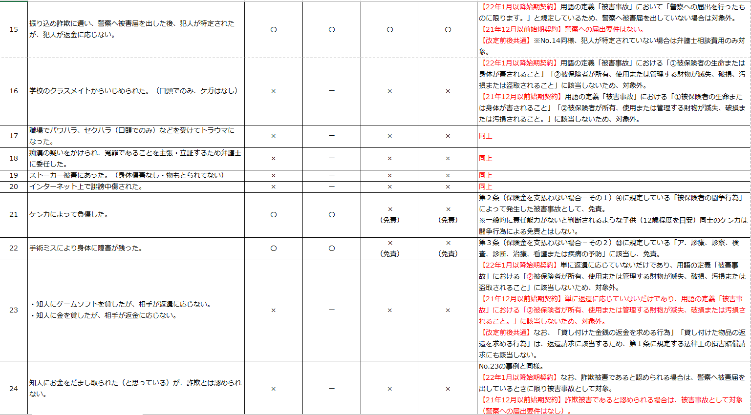 → 自動車事故に関するトラブルのみが補償対象
