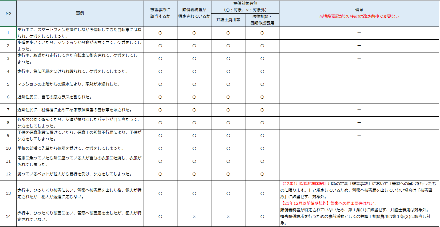 ・自転車事故や日常生活中のトラブル(近隣トラブル、買い物時の事故など)には使えない